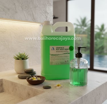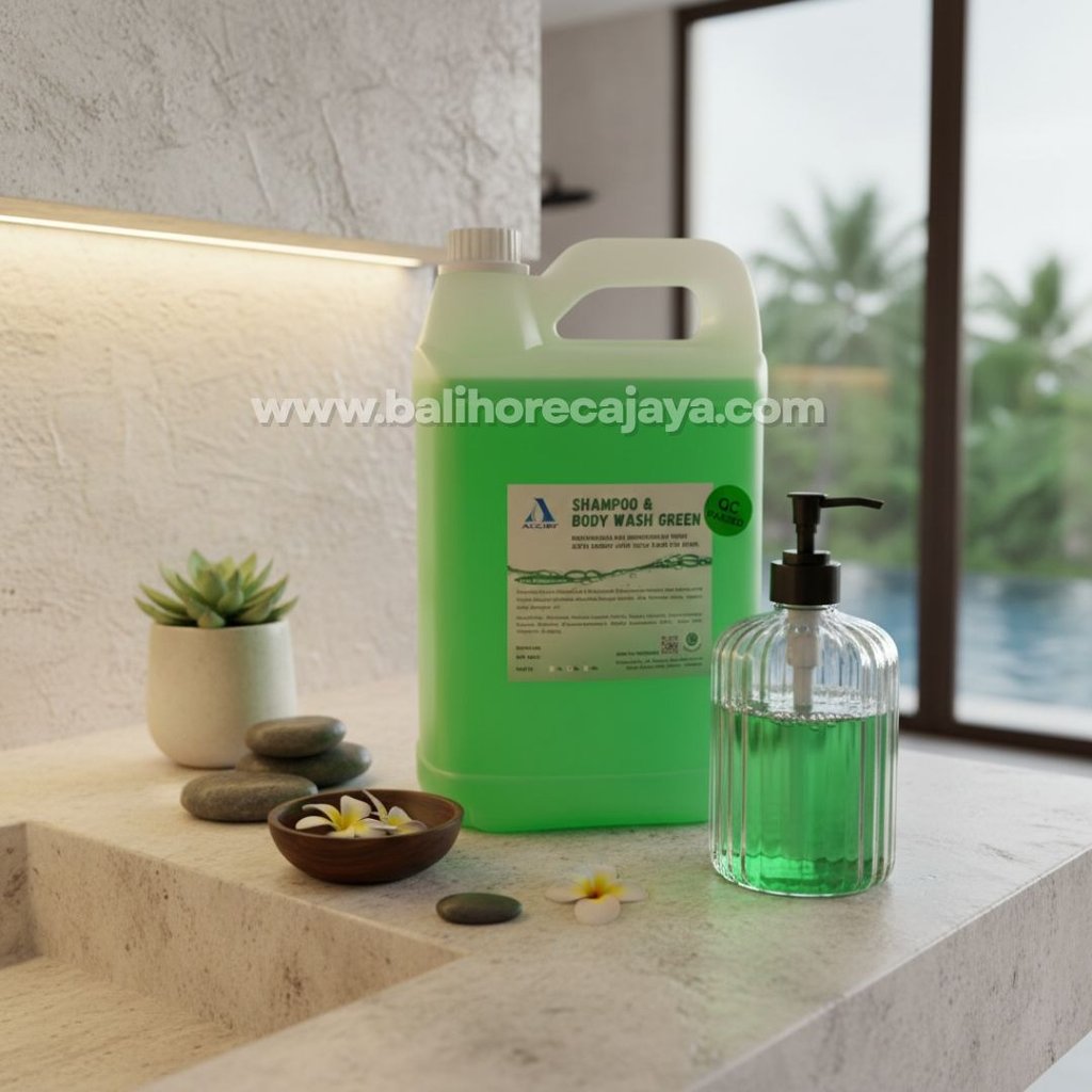 Dalam operasional bisnis akomodasi di Bali, kemudahan dan efisiensi adalah prioritas. Mengapa harus menyediakan dua botol terpisah jika Anda bisa mendapatkan kualitas pembersih rambut dan tubuh dalam satu kemasan? Shampoo & Body Wash Green 5 Liter hadir sebagai solusi all-in-one yang dirancang untuk memberikan kesegaran maksimal bagi tamu sekaligus penghematan bagi pengelola.